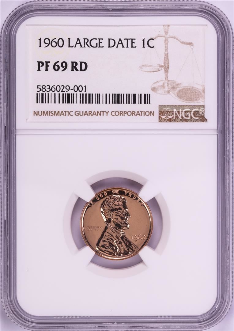 One 1960 Large Date Proof Lincoln Memorial Cent Coin NGC PF69RD. NGC Certified.