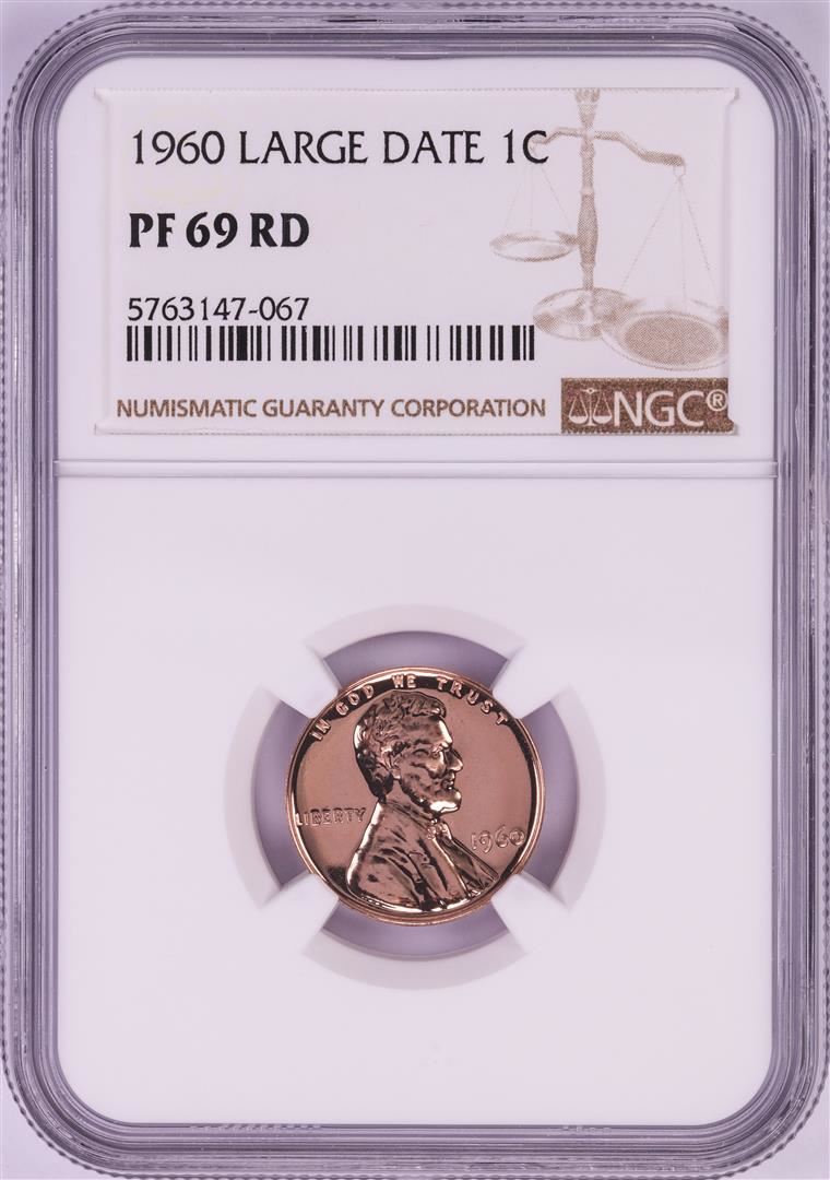 One 1960 Large Date Proof Lincoln Memorial Cent Coin NGC PF69RD. NGC Certified.