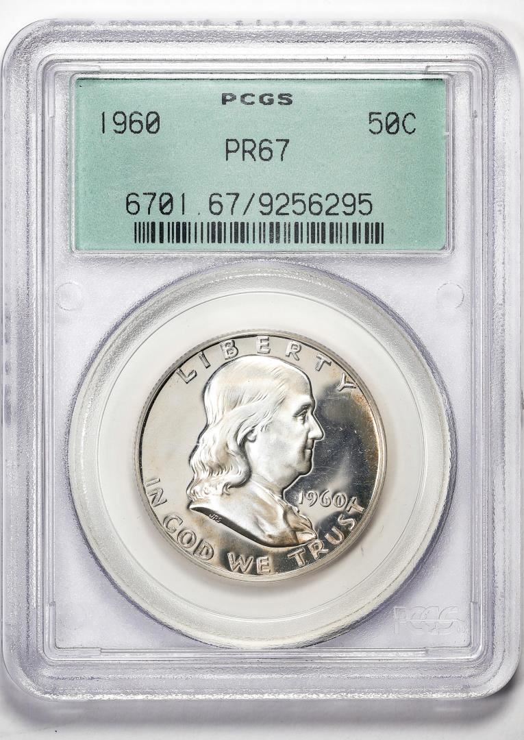 One 1960 Proof Franklin Half Dollar Coin PCGS PR67 Old Green Holder. PCGS Graded.