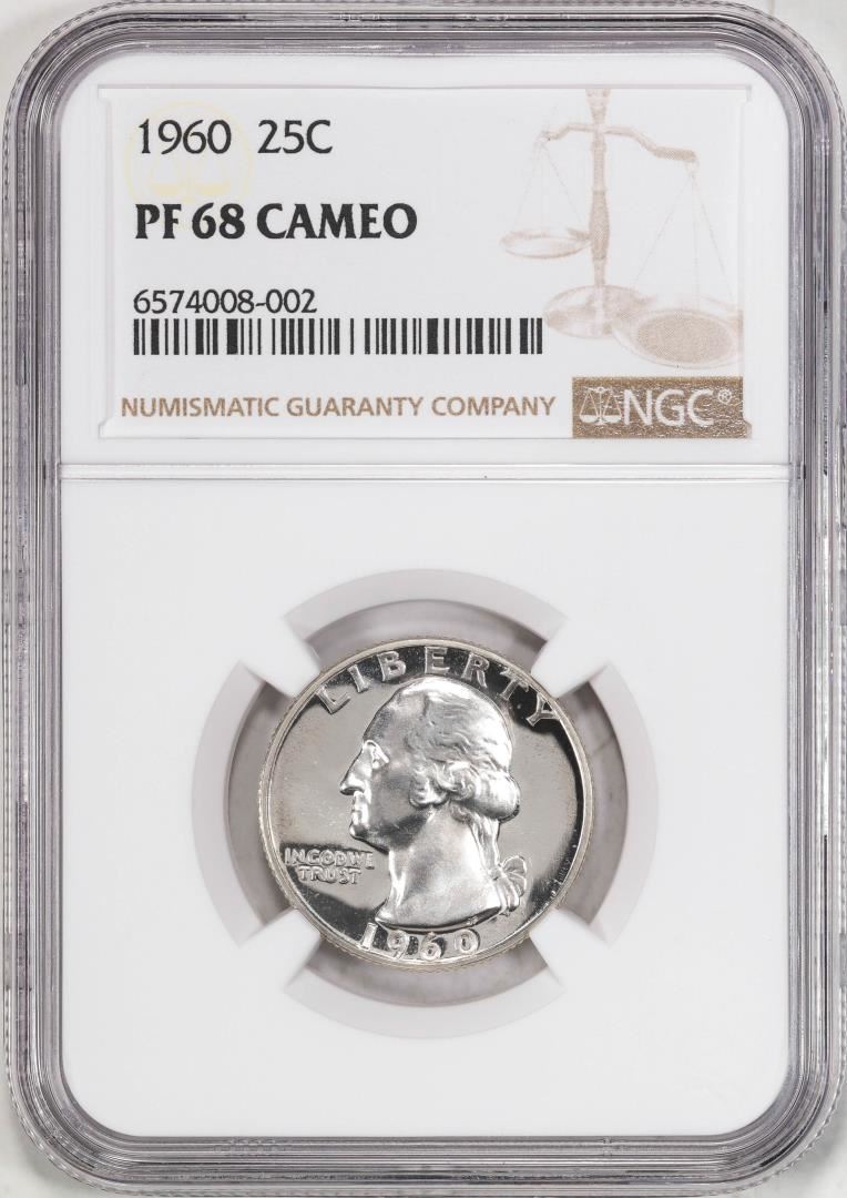 One 1960 Proof Washington Quarter Coin NGC PF68 Cameo. NGC Certified.