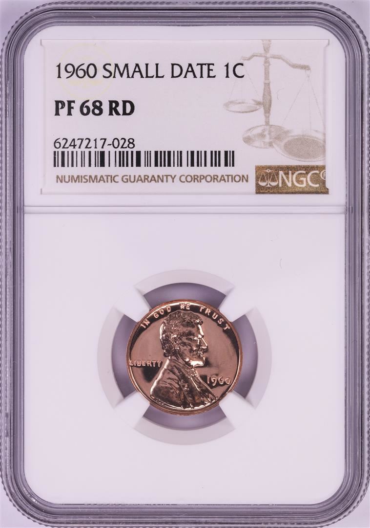 One 1960 Small Date Proof Lincoln Memorial Cent Coin NGC PF68RD. NGC Certified.