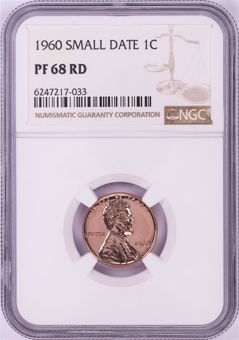 One 1960 Small Date Proof Lincoln Memorial Cent Coin NGC PF68RD. NGC Certified.