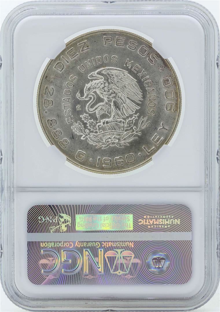 1960MO Mexico 10 Pesos Independence Anniversary Silver Coin NGC MS63