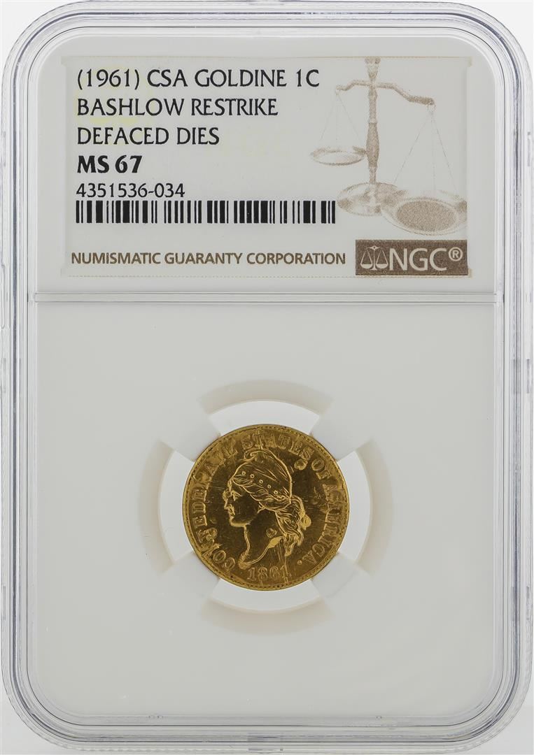 One 1961 CSA 1 Cent Goldine Coin Bashlow Restrike NGC MS67. NGC Certified.