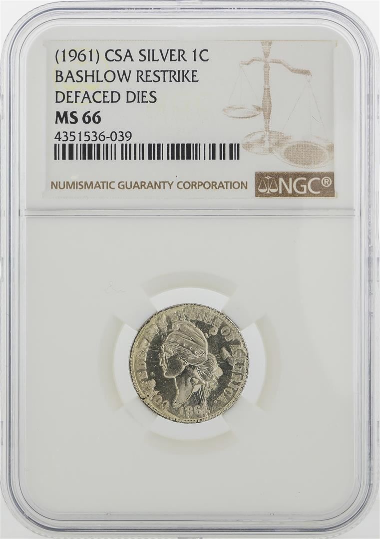 One 1961 CSA 1 Cent Silver Coin Bashlow Restrike NGC MS66. NGC Certified.