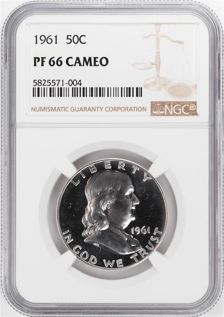 One 1961 Proof Franklin Half Dollar Coin NGC PF66 Cameo. NGC Certified.