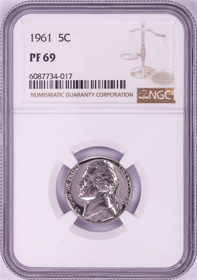 One 1961 Proof Jefferson Nickel Coin NGC PF69. NGC Certified.