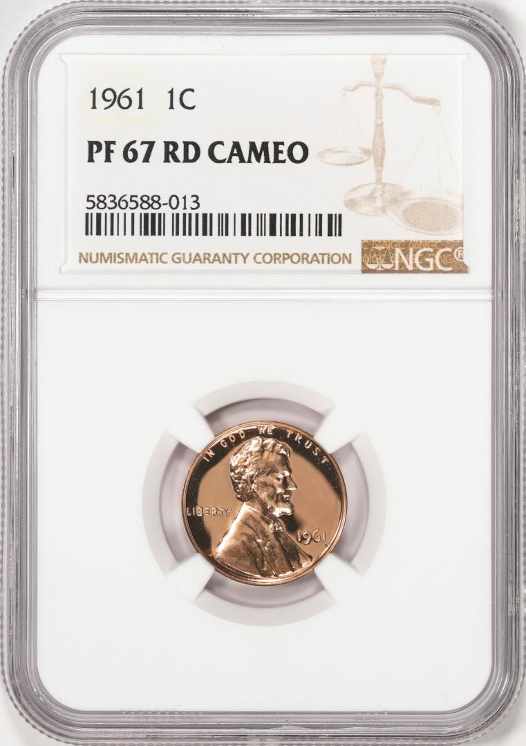 One 1961 Proof Lincoln Memorial Cent Coin NGC PF67RD Cameo. NGC Certified.
