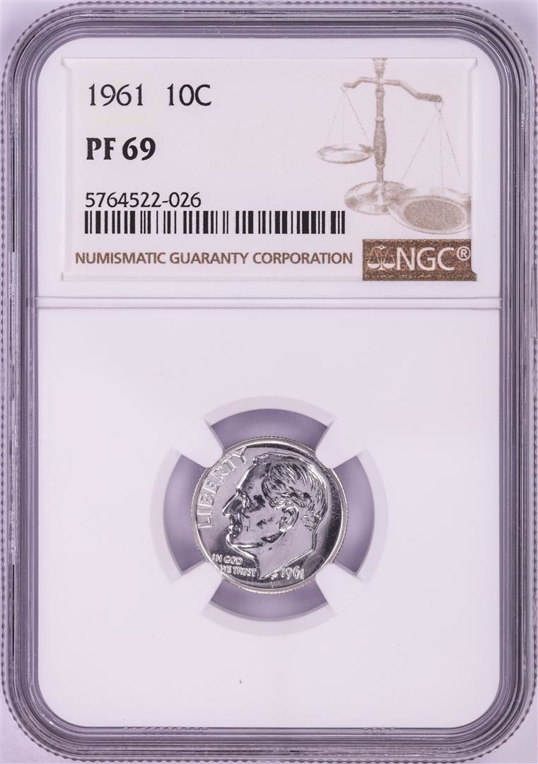 One 1961 Proof Roosevelt Dime Coin NGC PF69. NGC Certified.