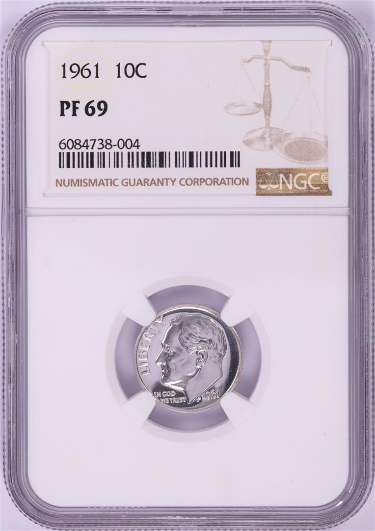 One 1961 Proof Roosevelt Dime Coin NGC PF69. NGC Certified.