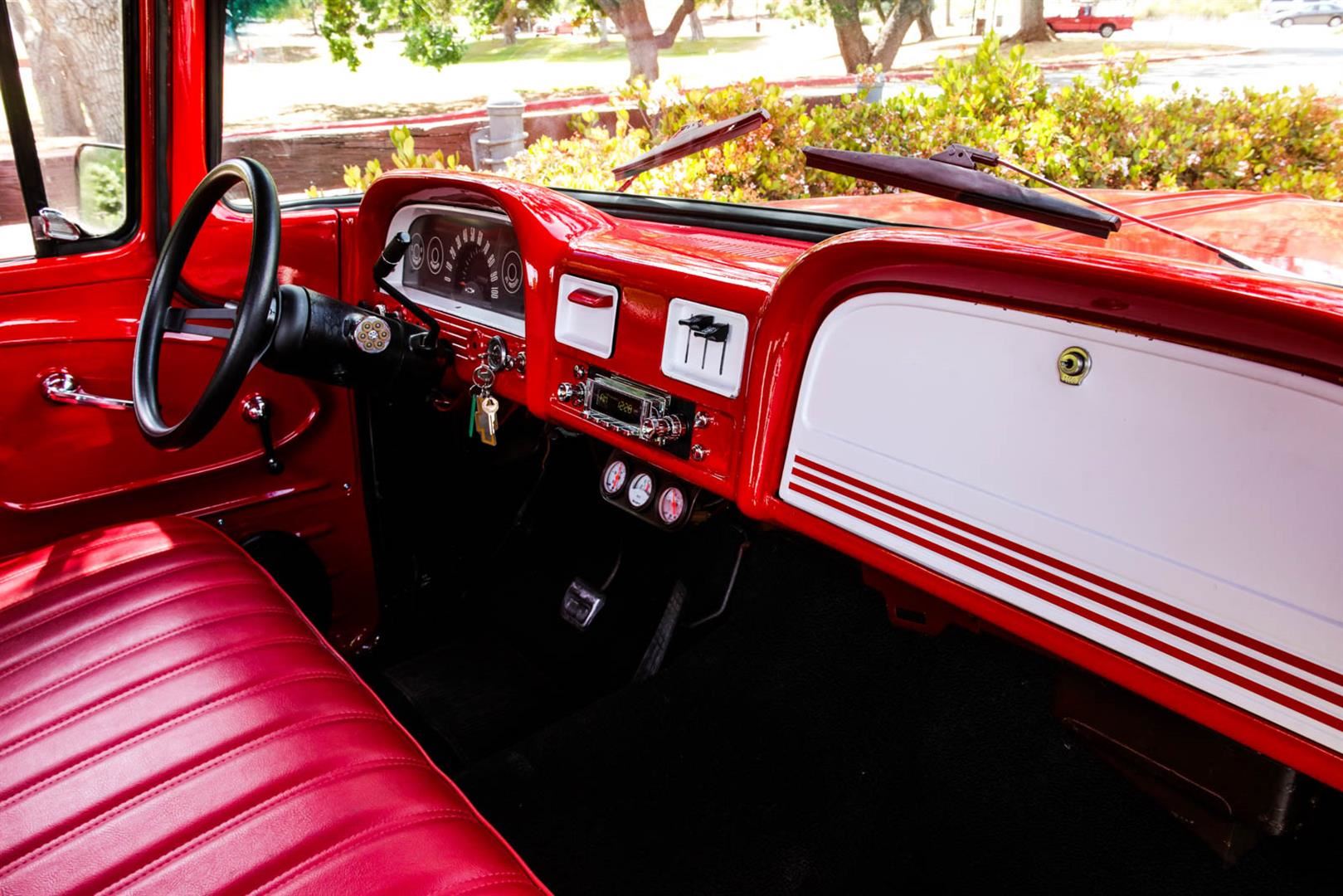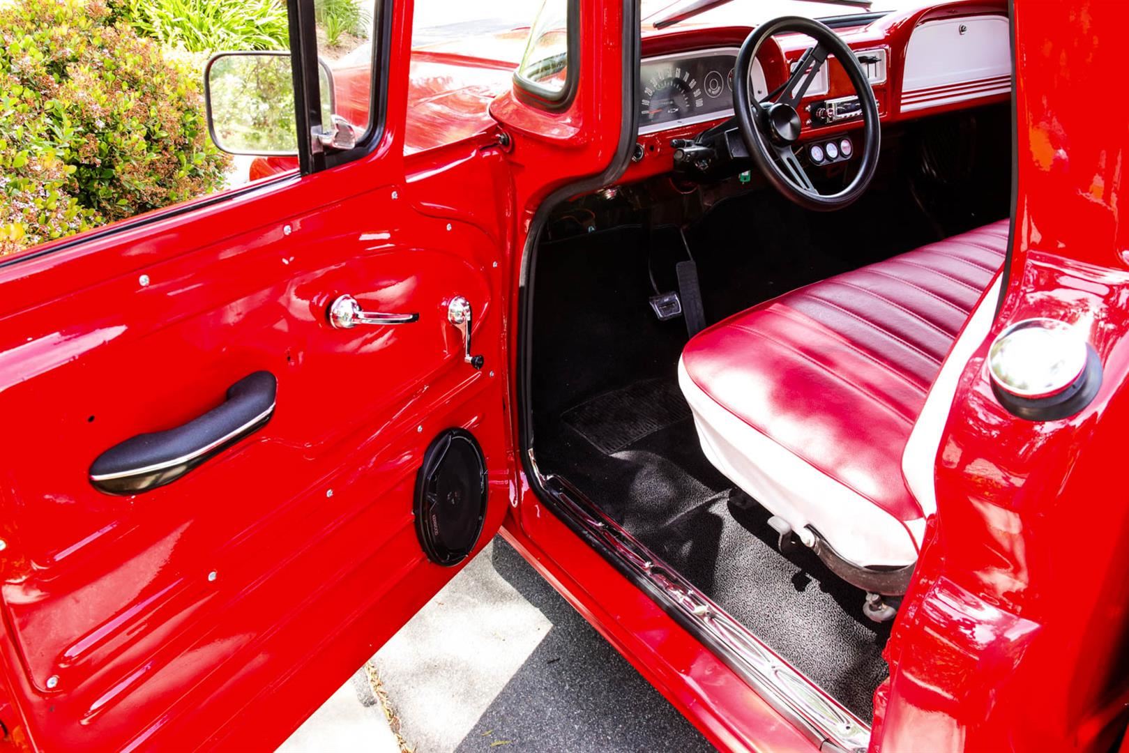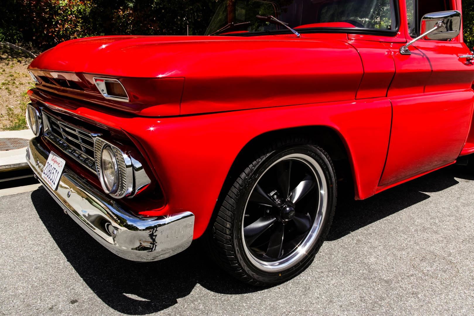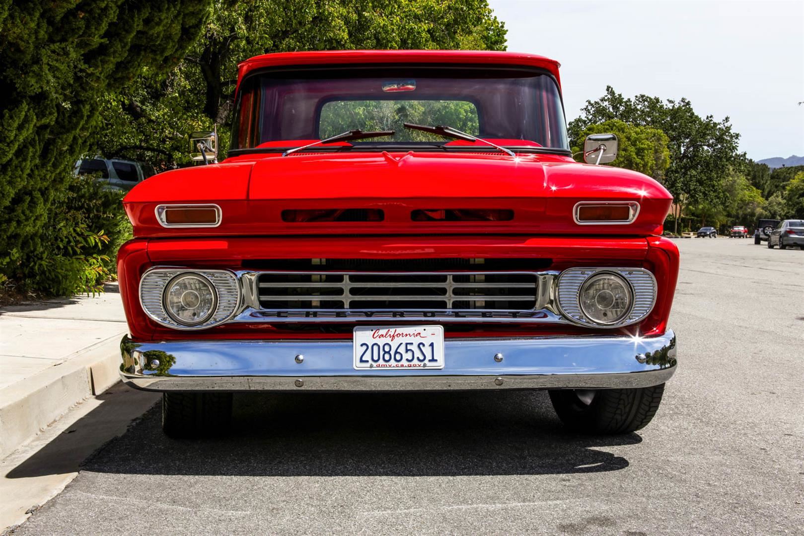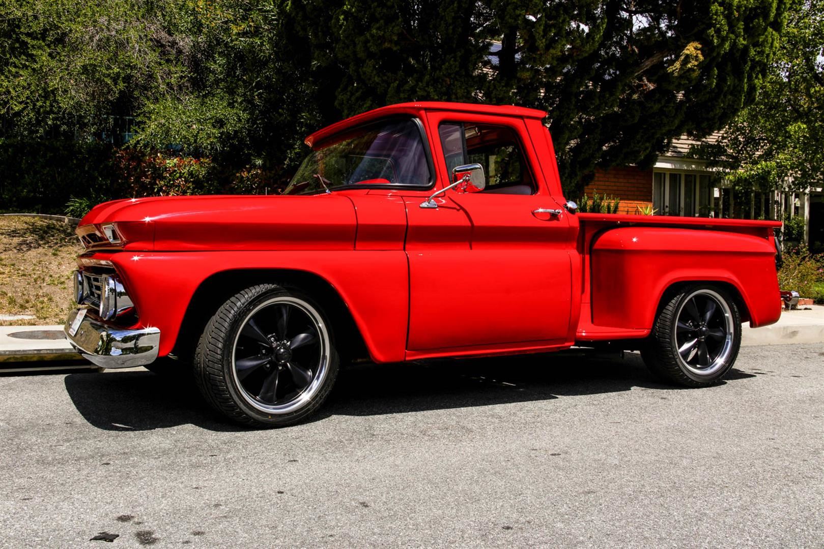 This custom 1962 Chevrolet C10 Short Bed Pickup Truck is a looker! This truck recently was redone with the following: Brand new Fire Engine Red Paint, New Custom 20" Black Rims, New Tires Front- 275/40/R20 and Rear Tires 315/35/R20, New Interior including floor carpet and custom Red & White vinyl seats, New Retro Stereo with Speakers, New wood panels in the truck bed with spray in lining around the sides, the engine is a 350ci Engine with Edelbrock intake, Automatic transmission, the odometer reads 57,450 TMU. This Truck roars and is sure to get looks everywhere you go. If you are someone who doesn't want to spend the money on a show truck but wants a daily driver that looks and sounds great, then this truck is for you! Clean California title in hand, VIN # 2C1440112016. Shipping for this item will need to be arranged by the winning buyer. We are happy to refer you to a couple of companies that can help you with the shipping details once payment has been completed. We wish you good luck and happy bidding!