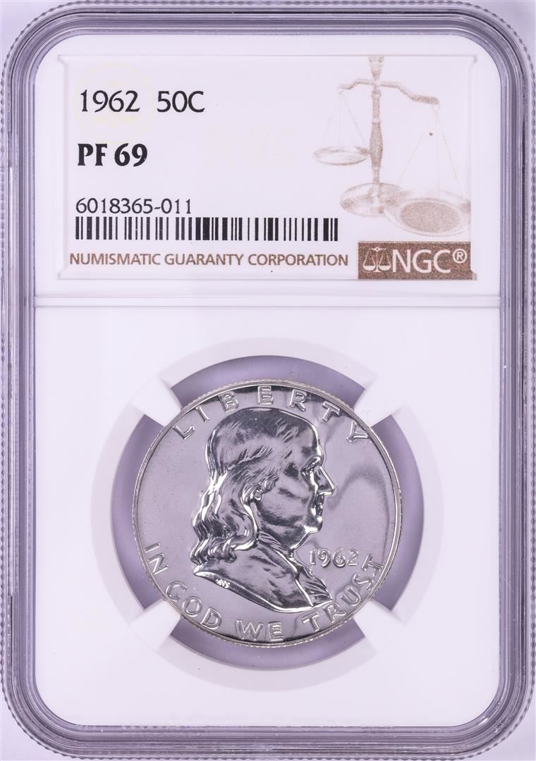 One 1962 Proof Franklin Half Dollar Coin NGC PF69. NGC Certified.