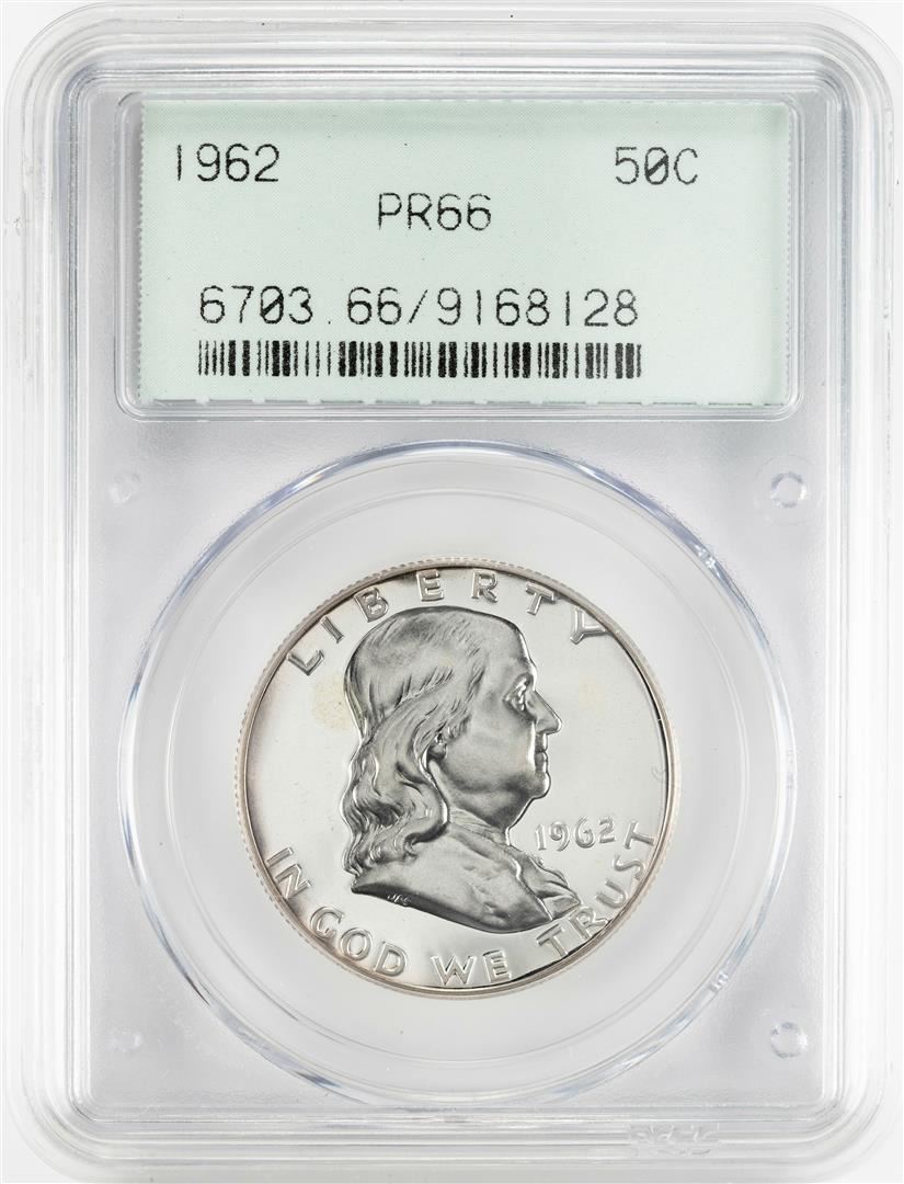 One 1962 Proof Franklin Half Dollar Coin PCGS PR66 Old Green Holder. PCGS Graded.