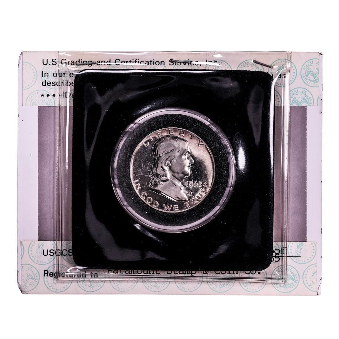 One 1962 Proof Franklin Half Dollar Coin USGCS Certification.