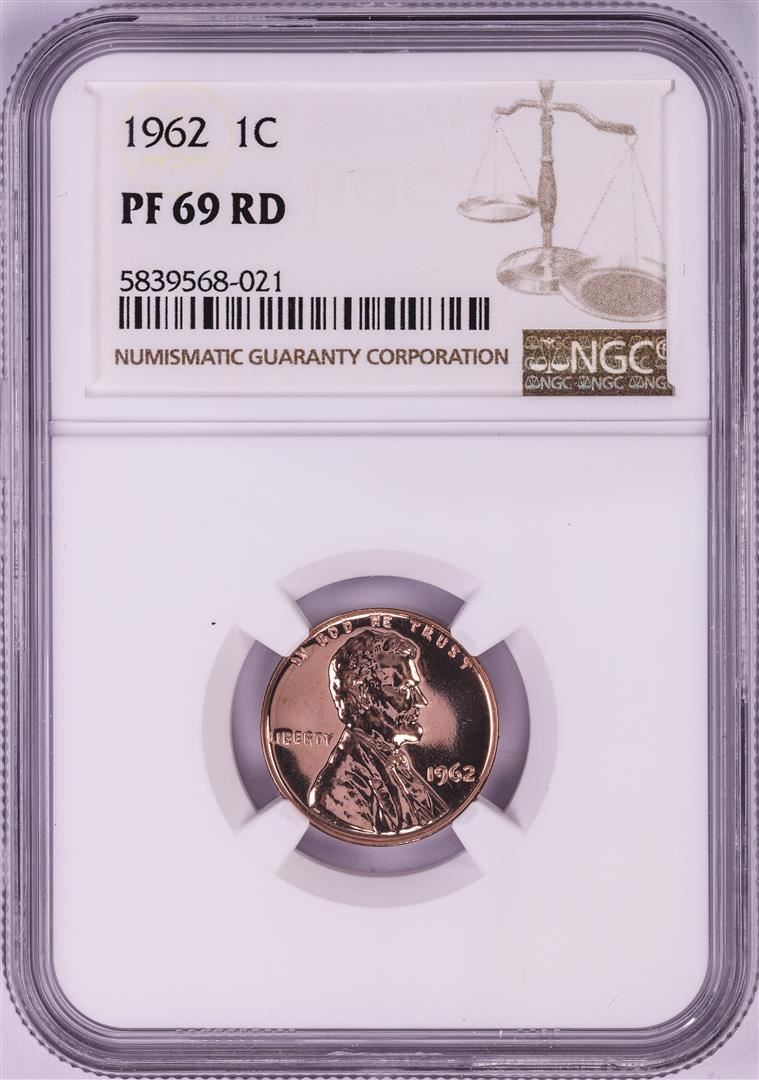 One 1962 Proof Lincoln Memorial Cent Coin NGC PF69RD. NGC Certified.