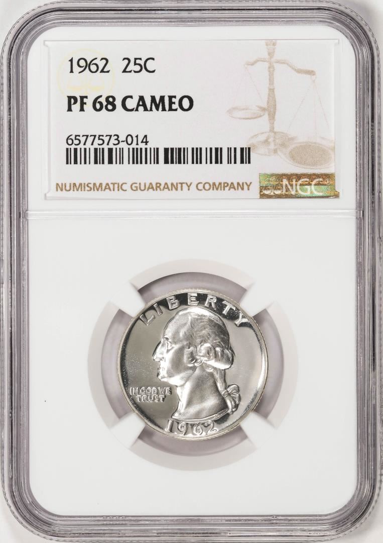 One 1962 Proof Washington Quarter Coin NGC PF68 Cameo. NGC Certified.