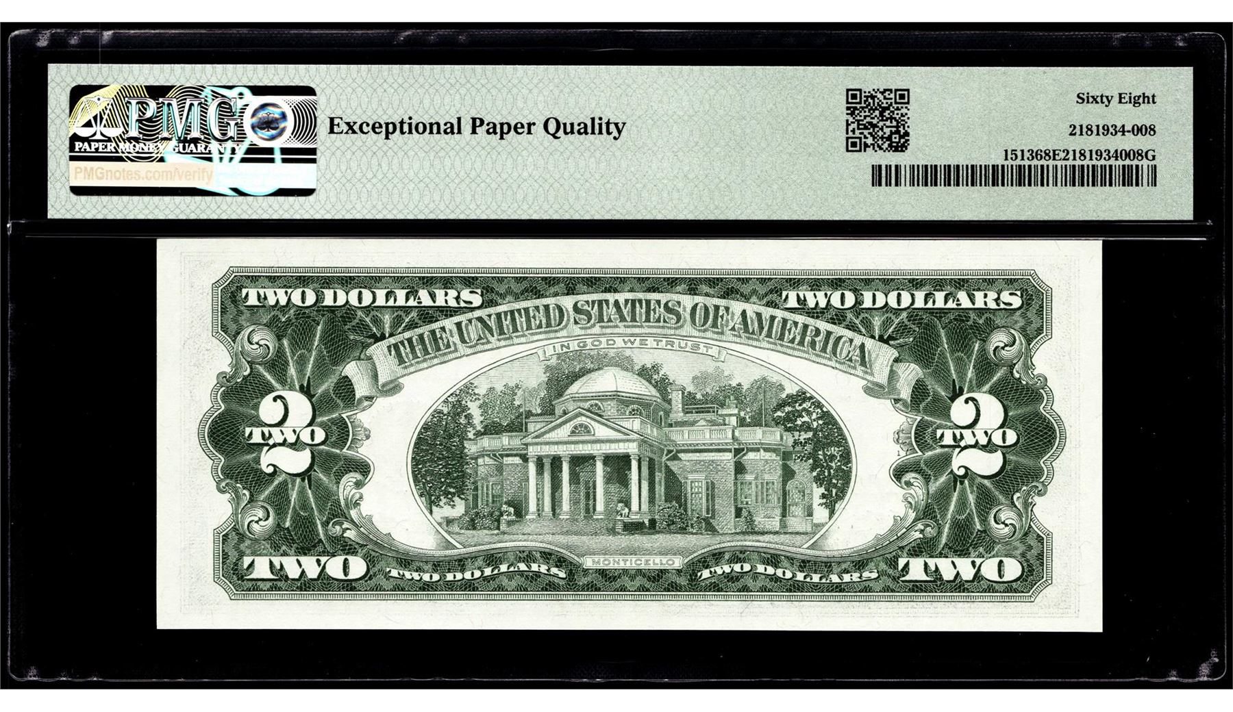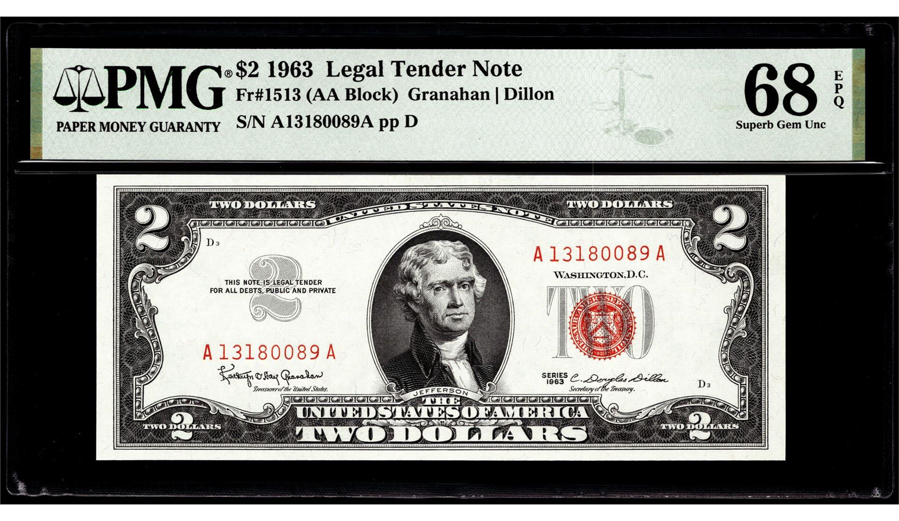 One 1963 $2 Legal Tender Note Fr.1513 PMG Superb Gem Uncirculated 68EPQ. PMG Certified.