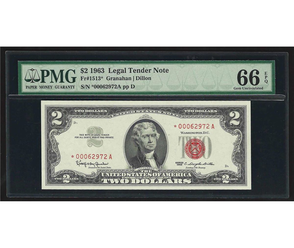 One 1963 $2 Legal Tender Note PMG Gem Uncirculated 66EPQ. PMG Certified.