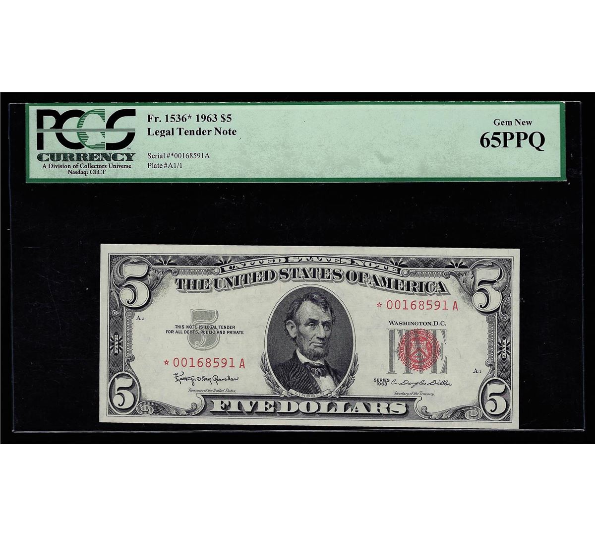 1963 $5 Legal Tender Note STAR PCGS Gem New 65PPQ