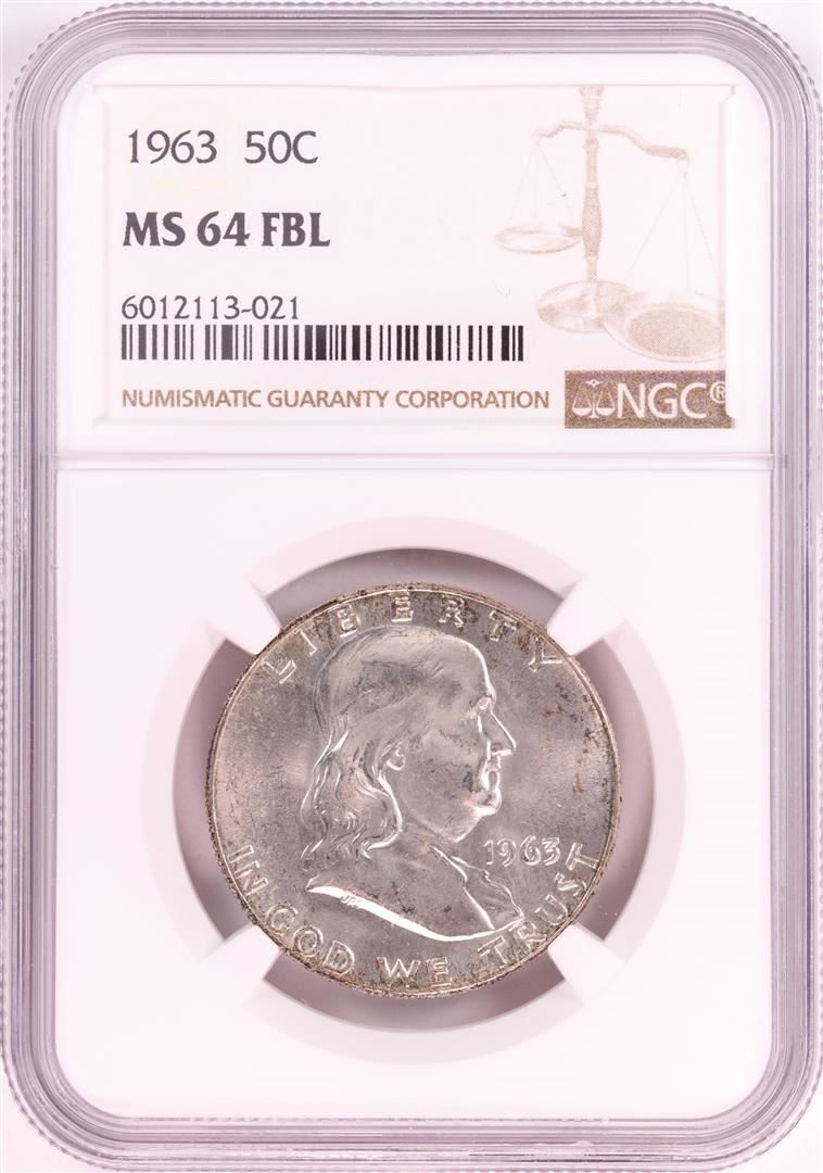 One 1963 Franklin Half Dollar Coin NGC MS64FBL. NGC Certified.
