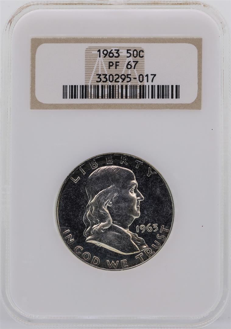 One 1963 Franklin Half Dollar Proof Coin NGC PF67. NGC Certified.