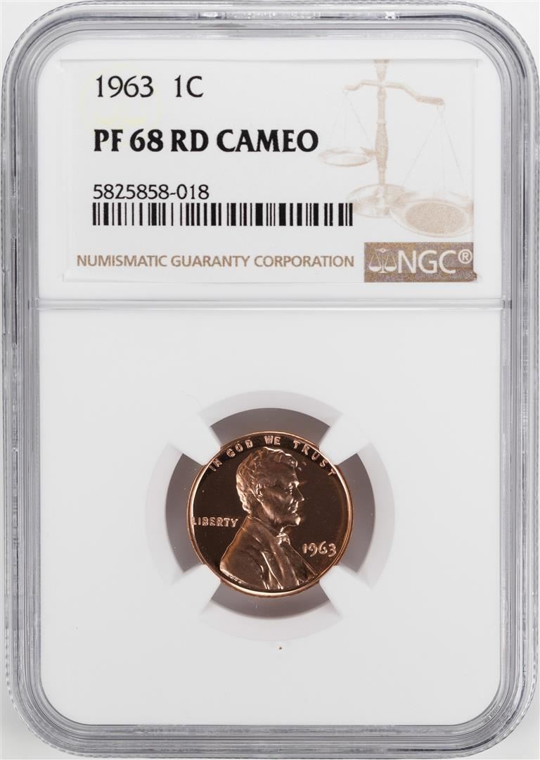 One 1963 Proof Lincoln Memorial Cent Coin NGC PF68RD Cameo. NGC Certified.