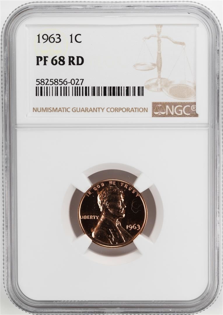 One 1963 Proof Lincoln Memorial Cent Coin NGC PF68RD. NGC Certified.