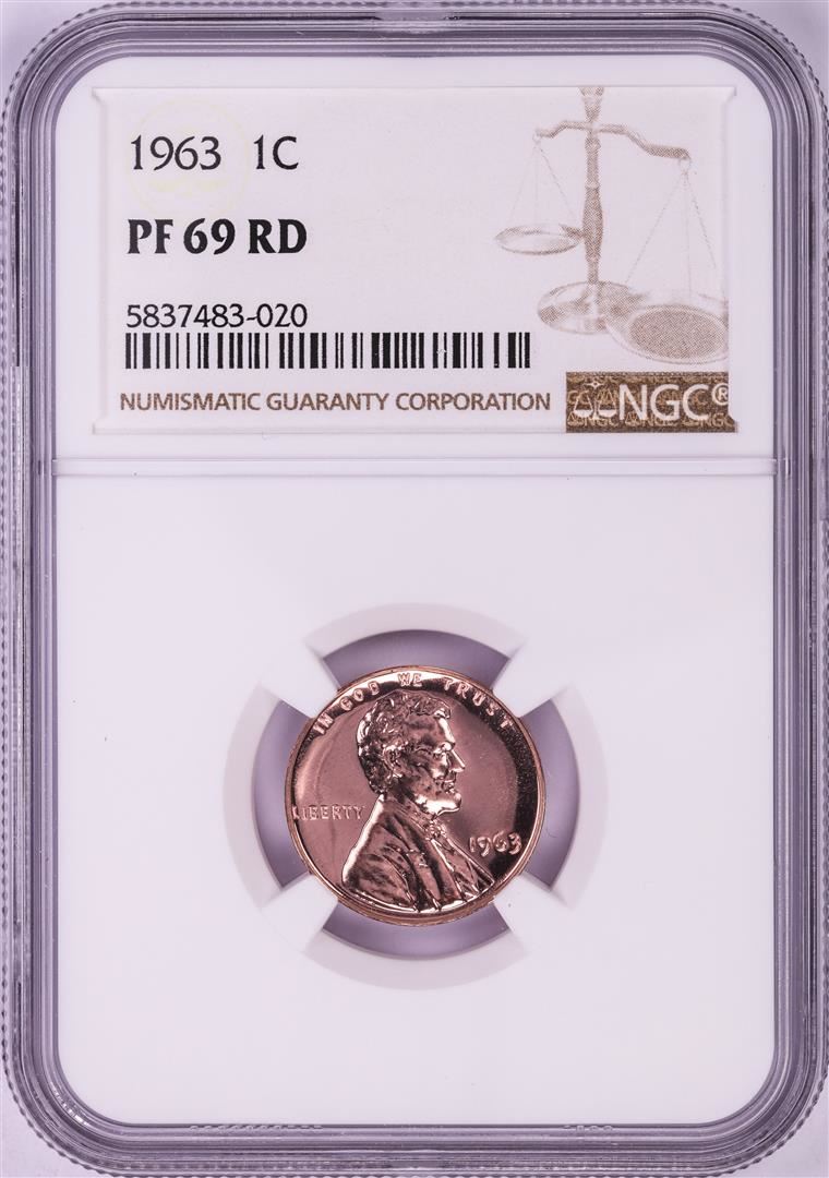 One 1963 Proof Lincoln Memorial Cent Coin NGC PF69RD. NGC Certified.