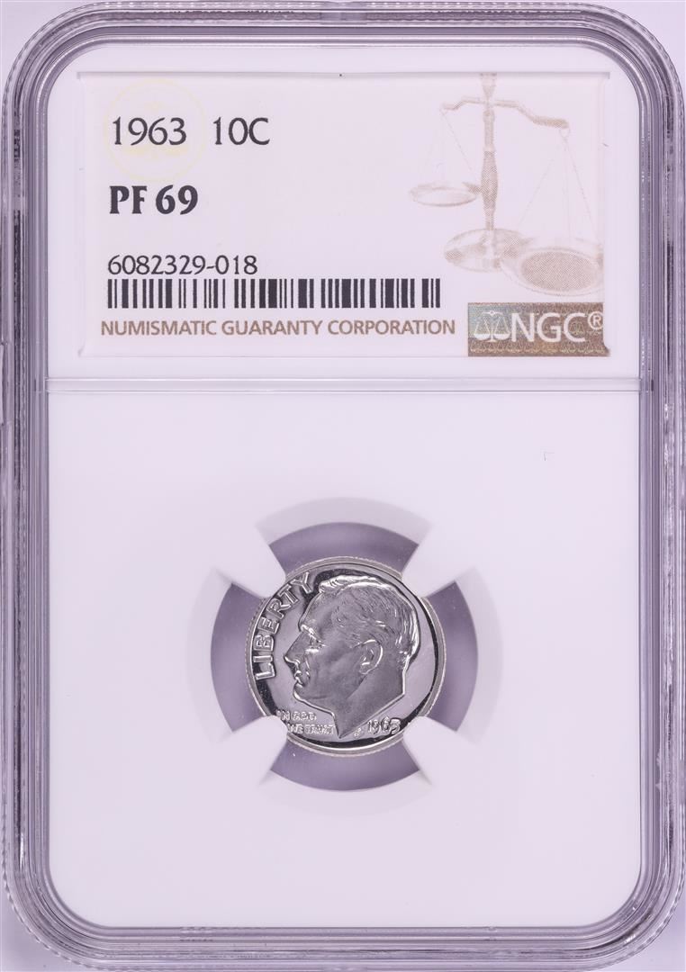 One 1963 Proof Roosevelt Dime Coin NGC PF69. NGC Certified.