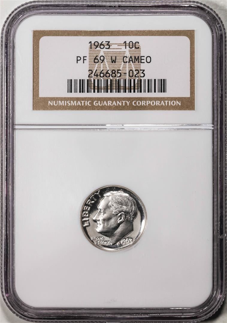 One 1963 Proof Roosevelt Dime Coin PCGS PF69 Cameo. PCGS Graded.
