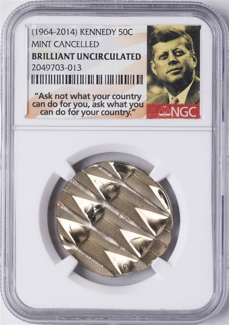 One 1964-2014 Mint Cancelled Kennedy Half Dollar Coin NGC Brilliant Uncirculated. NGC Certified.