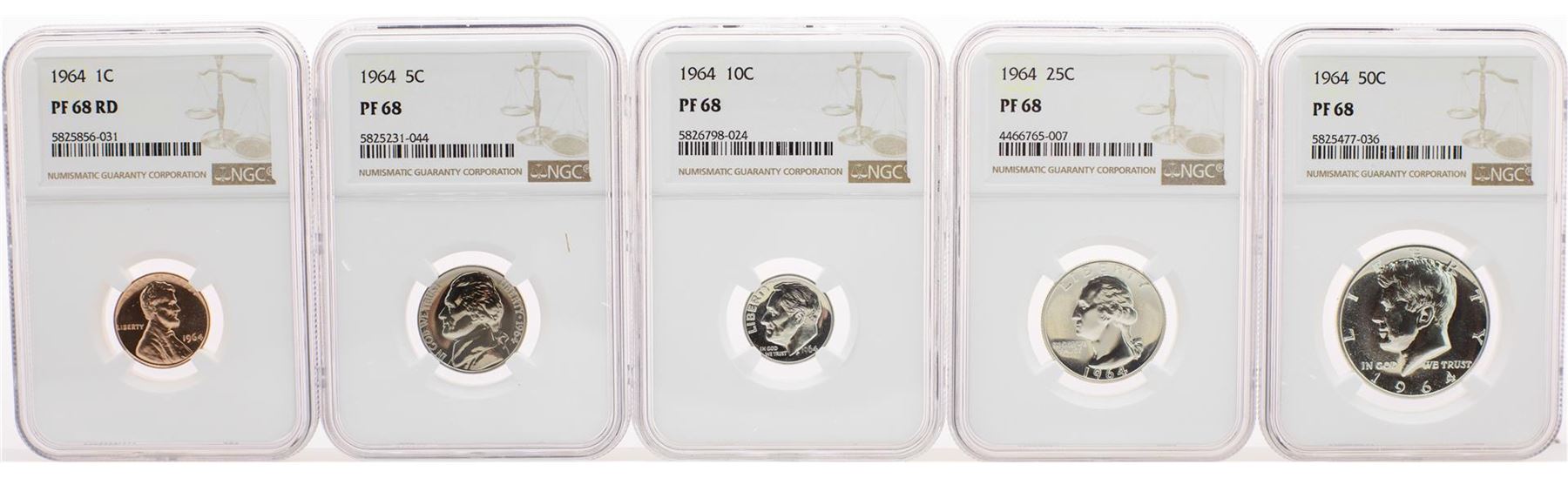 1964 (5) Coin Proof Set Graded NGC PF68