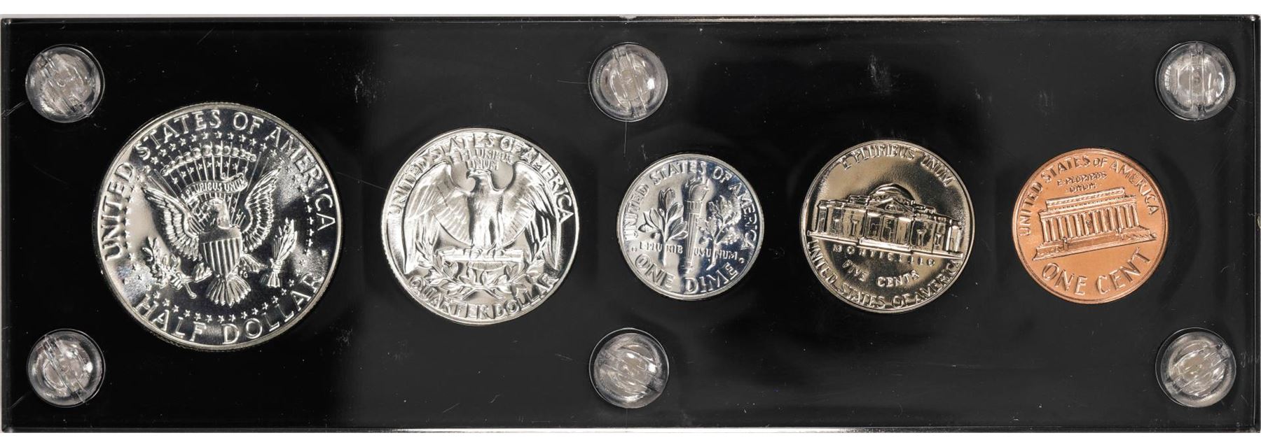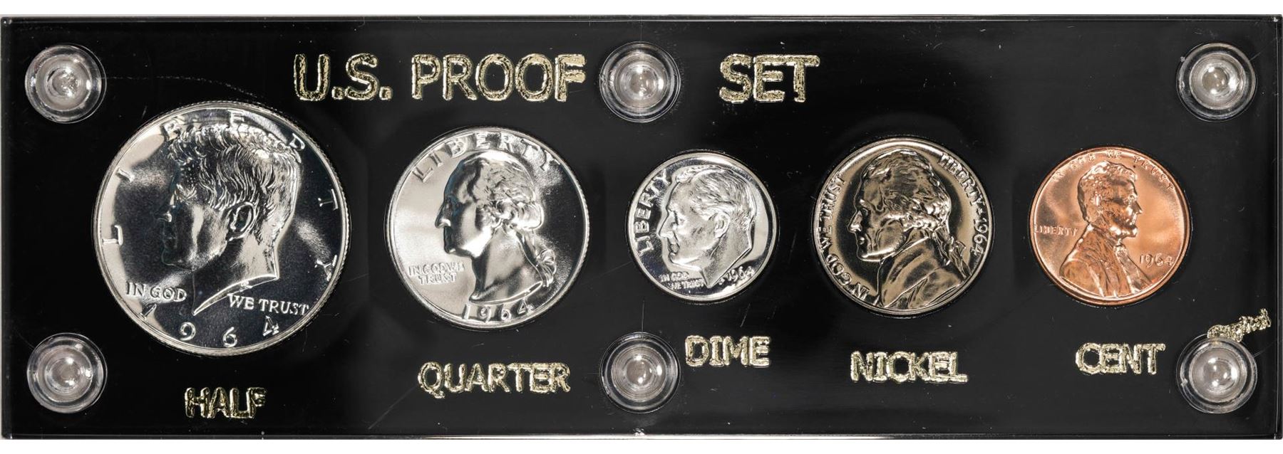 One 1964 (5) Coin Proof Set with Accented Hair Half Dollar.