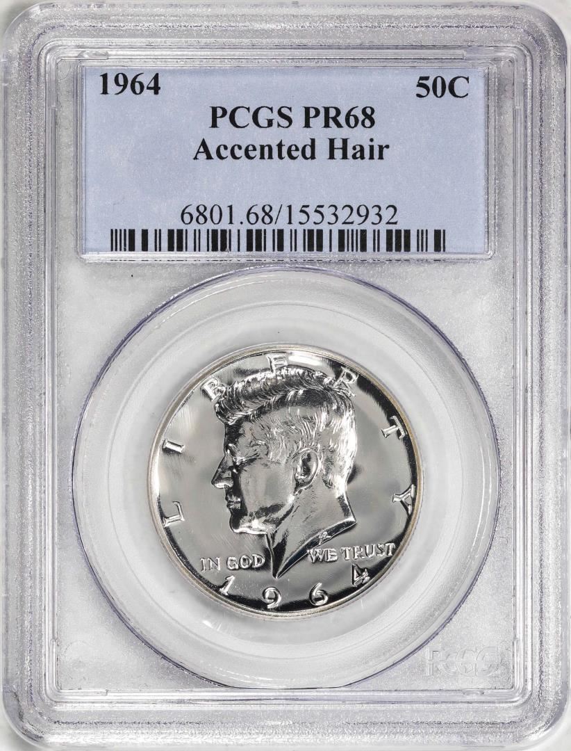 One 1964 Accented Hair Proof Kennedy Half Dollar Coin PCGS PR68. PCGS Graded.