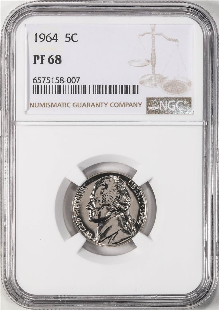 One 1964 Proof Jefferson Nickel Coin NGC PF68. NGC Certified.
