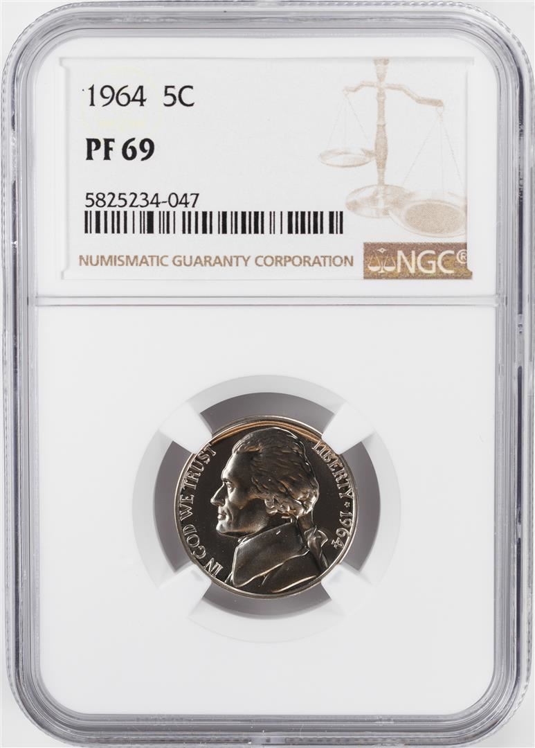 One 1964 Proof Jefferson Nickel Coin NGC PF69. NGC Certified.