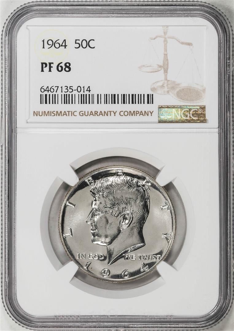 One 1964 Proof Kennedy Half Dollar Coin NGC PF68. NGC Certified.