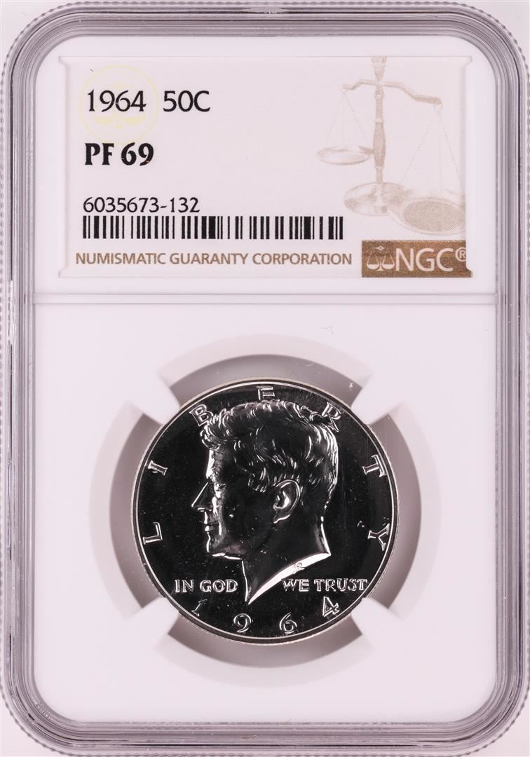 One 1964 Proof Kennedy Half Dollar Coin NGC PF69. NGC Certified.