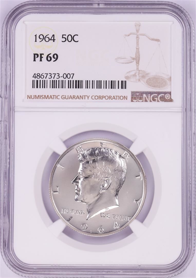 One 1964 Proof Kennedy Half Dollar Coin NGC PF69. NGC Certified.