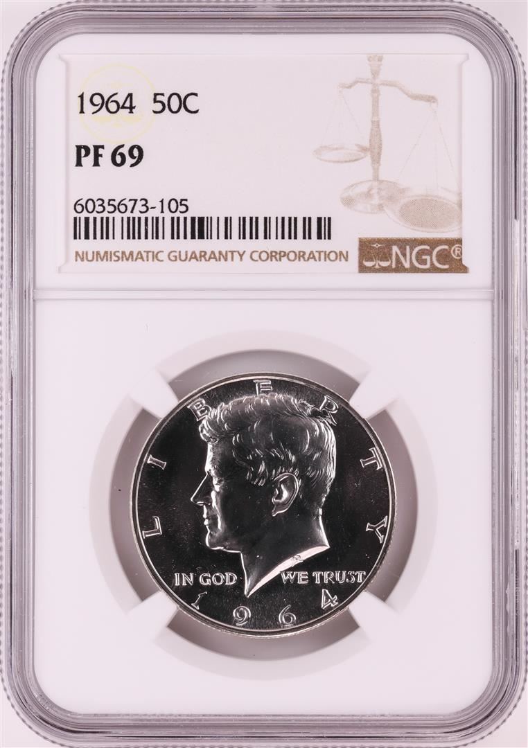One 1964 Proof Kennedy Half Dollar Coin NGC PF69. NGC Certified.