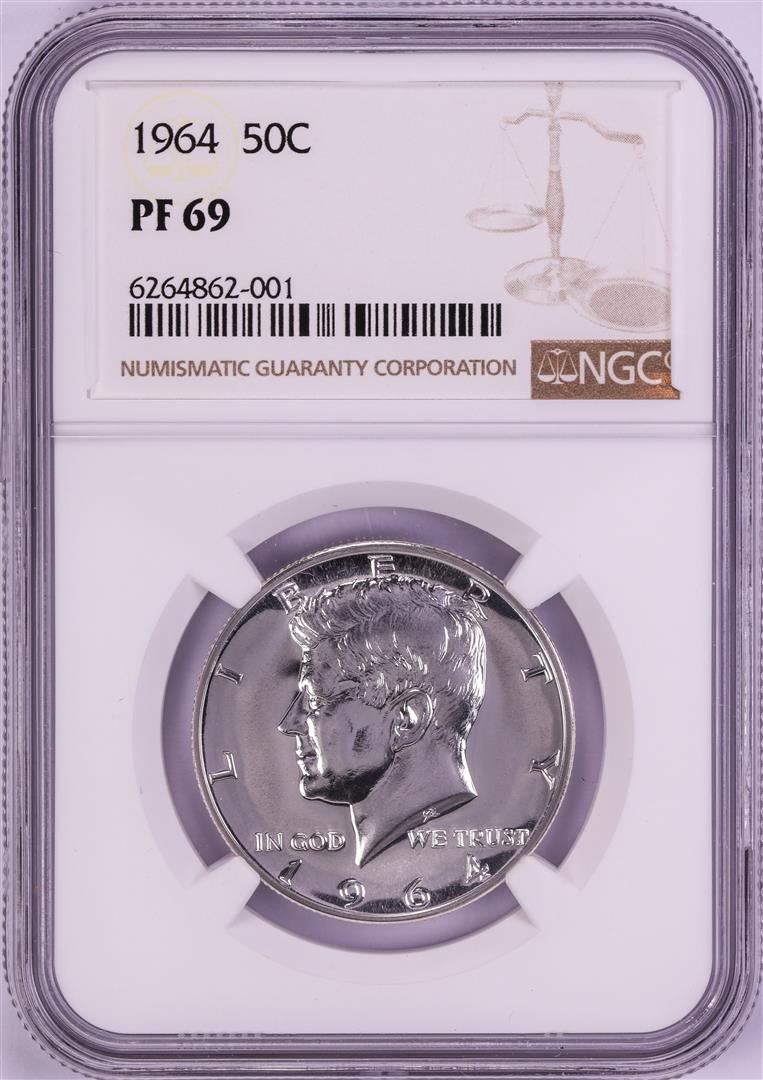 One 1964 Proof Kennedy Half Dollar Coin NGC PF69. NGC Certified.