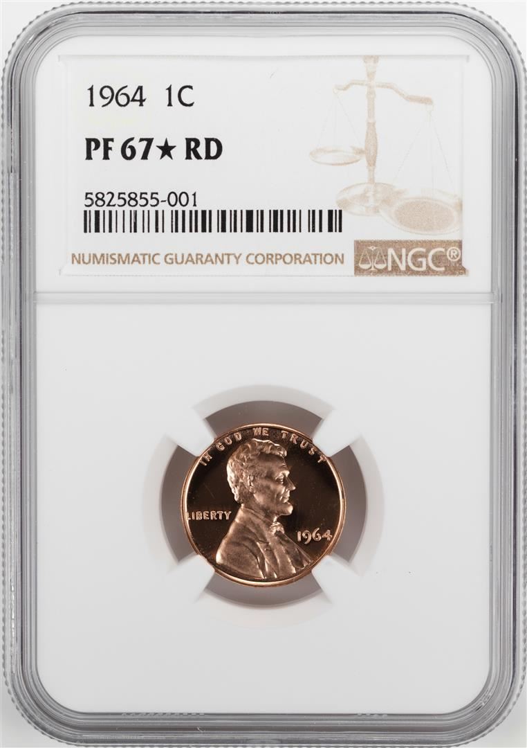 One 1964 Proof Lincoln Memorial Cent Coin NGC PF67RD Star. NGC Certified.