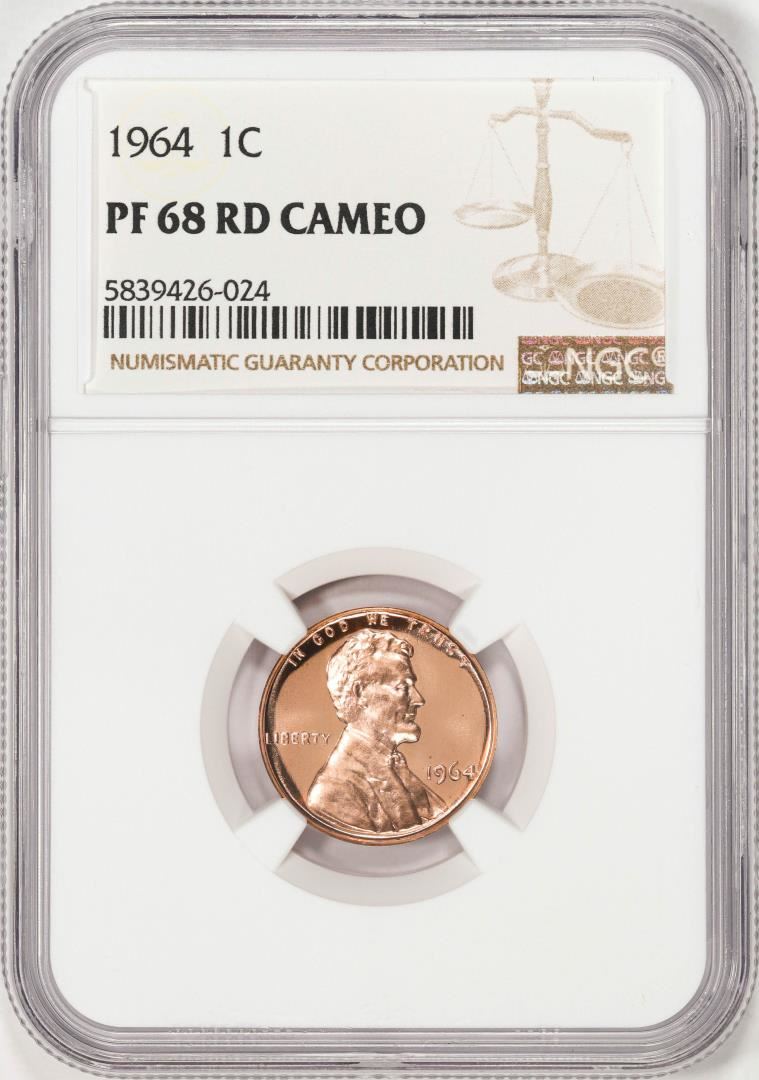 One 1964 Proof Lincoln Memorial Cent Coin NGC PF68RD Cameo. NGC Certified.