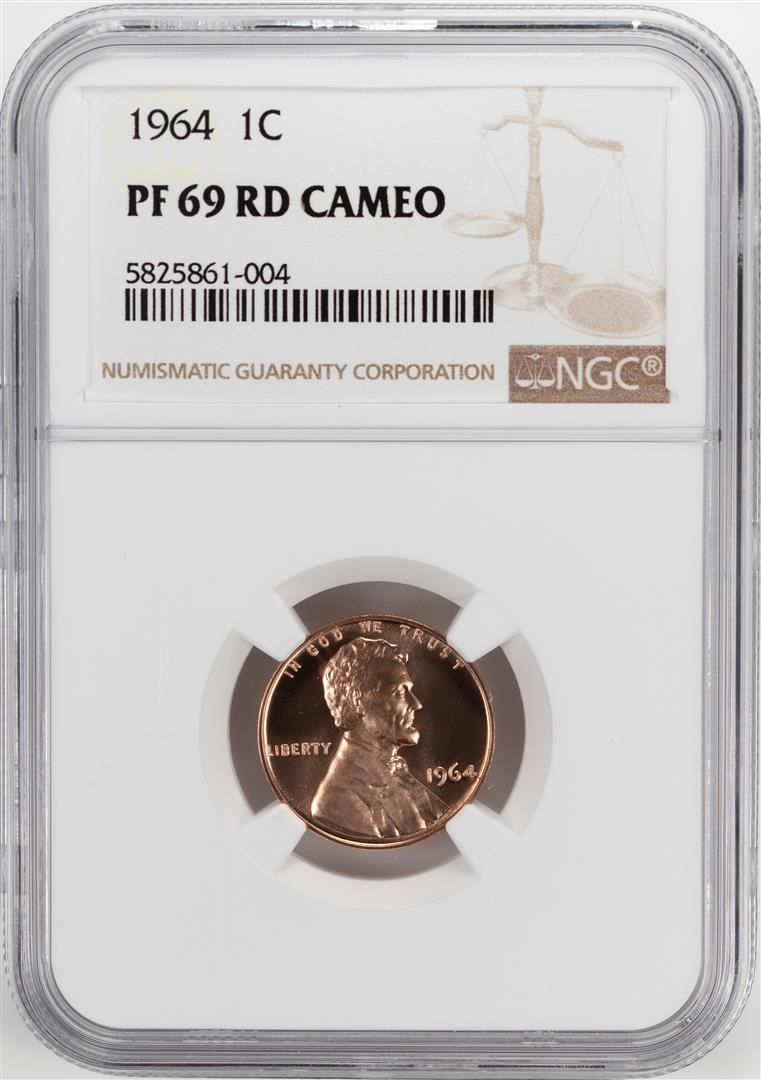One 1964 Proof Lincoln Memorial Cent Coin NGC PF69RD Cameo. NGC Certified.