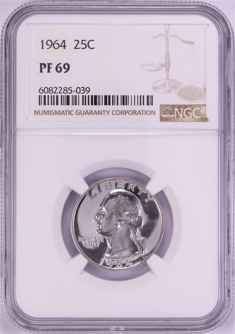 One 1964 Proof Washington Quarter Coin NGC PF69. NGC Certified.