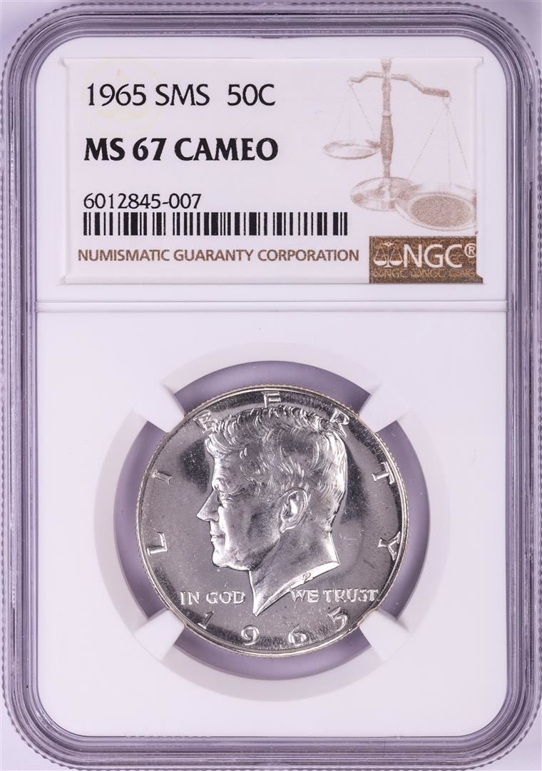 One 1965 SMS Kennedy Half Dollar Coin NGC MS67 Cameo. NGC Certified.