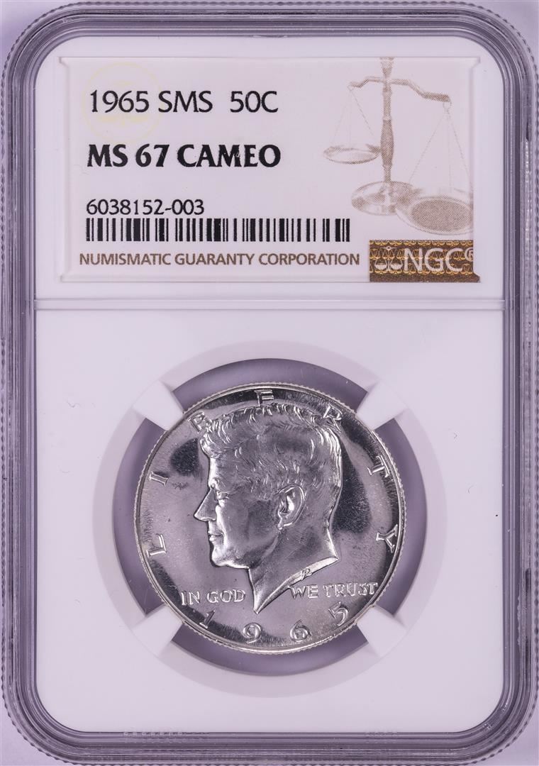 One 1965 SMS Kennedy Half Dollar Coin NGC MS67 Cameo. NGC Certified.