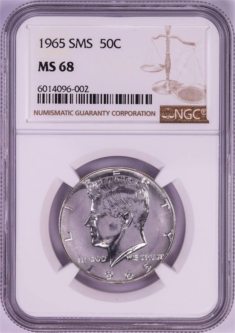 One 1965 SMS Kennedy Half Dollar Coin NGC MS68. NGC Certified.