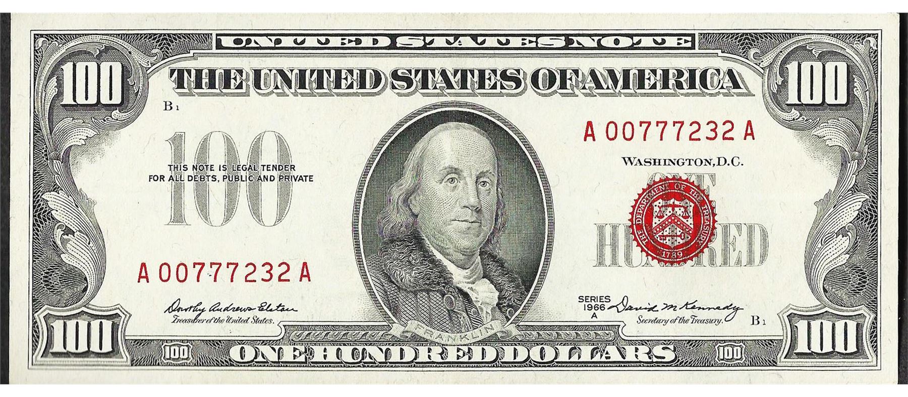 One 1966 $100 Legal Tender Note.
