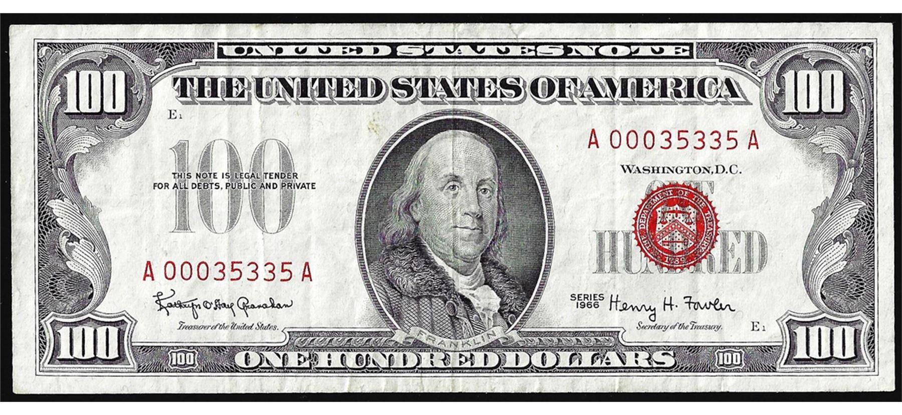 One 1966 $100 Legal Tender Note.